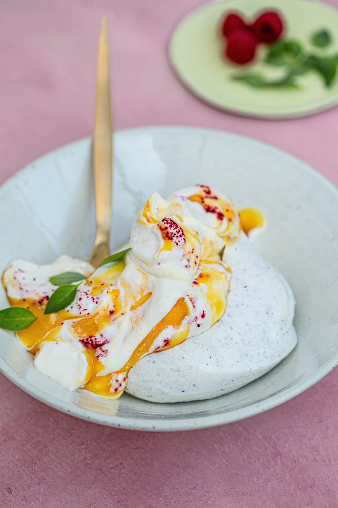 This beautiful pavlova wreath is topped with cranberries, raspberries, pomegranate seeds, fresh rosemary and a light dust of icing sugar. A great dessert for any Christmas table.An irresistibly rich and indulgent chocolate mousse with a kahlúa-spiked cream topping. Not for the faint hearted!An autumnal twist of this classic dessert topped with seasonal fruit such as figs, cranberries and raspberries.This delicious summer dessert is sunshine on a plate. It's guaranteed to be a talking point at your next dinner party.